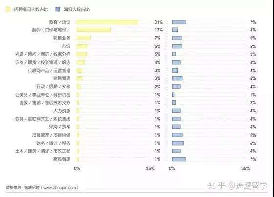 • 据报告显示,海归的就业岗位与所学专业的匹配度有所提升。这是因为在经济全球化的今天,越来越的岗位开始与国际接轨,避免了留学生所学专业与国内岗位不相关、不匹配的情况。