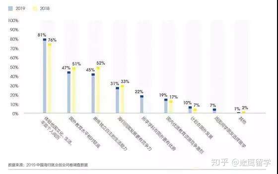 这确实是吸引海归们的三个因素之一,但令人惊讶的是,选择“回乡”的留学生数量正在攀升,占比从 2018年的 9%提升至 2019年的 30%,增长 21个百分点。