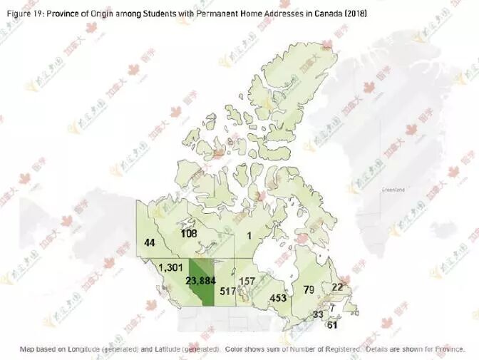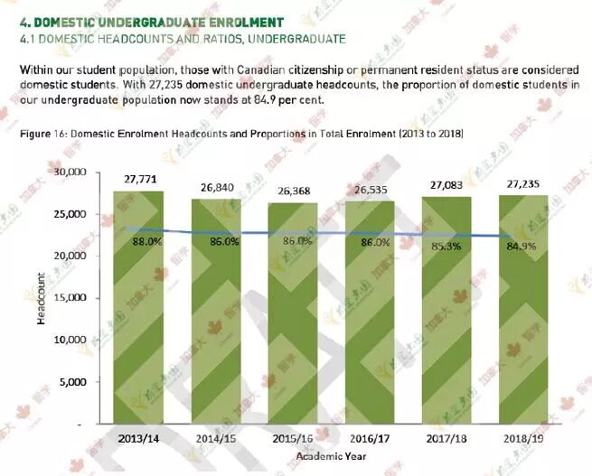 加拿大本国学生27235人,占到了84.9%的比例,国际生有4855人,占15.1%。