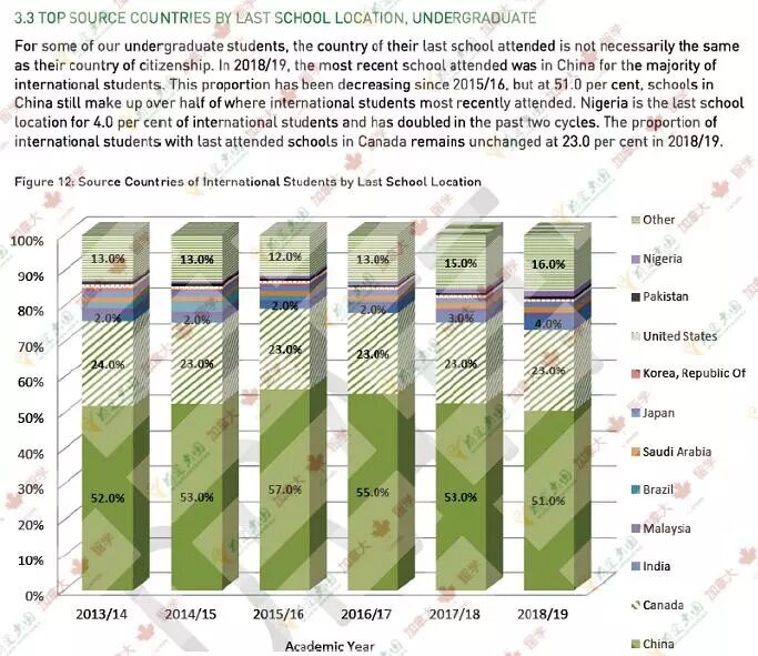 来自中国高中的学生占到了50%以上的比例,其次是加拿大高中20%多。