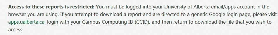 登陆阿尔伯塔大学官网,选择enrolment report的链接时突然跳出来:此部分内容没有open access也就是非公开,需要用学校系统的账户和密码才能登陆查看并且下载