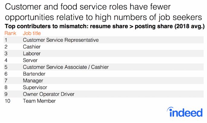 总的来说,报告发现加拿大劳动力市场存在很大程度的不匹配。在2018年12月,31%的求职者不得不改变自己的角色,以消除简历 - 职位差距。虽然在某些情况下转换工作可能是可行的,但在其他情况下,求职者可能没有合适的技能或经验来转换工作种类。