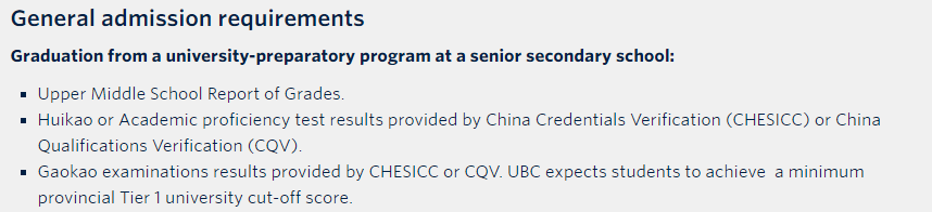英属哥伦比亚大学对于高考成绩要求非常明确,必须一本线以上,应届生往届生都需要。