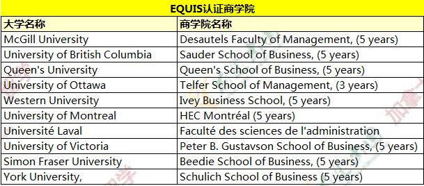AACSB、EQUIS两大认证:英属哥伦比亚大学University of British Columbia、女王大学Queen’s University、拉瓦尔大学Laval University、维多利亚大学University of Victoria、西蒙菲莎大学Simon Fraser University;
