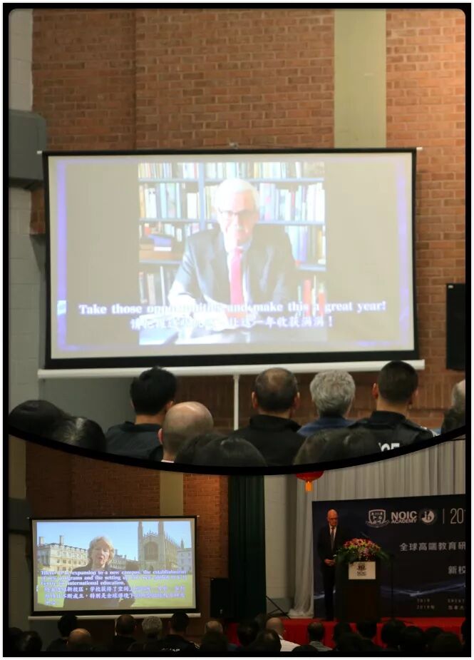 NOIC顾问委员会委员、前英国伊顿公学校长Tony Little先生也送来了视频问候,他祝贺大家收获全新的校园并期待NOIC全体师生能够把握好这 的机遇;NOIC顾问委员会委员、前剑桥国际考试中心CEO Ann Puntis女士带来视频问候,她肯定了新校园作为全球语境下新型国际教育研发中心的成立是一项令人赞叹的发展。