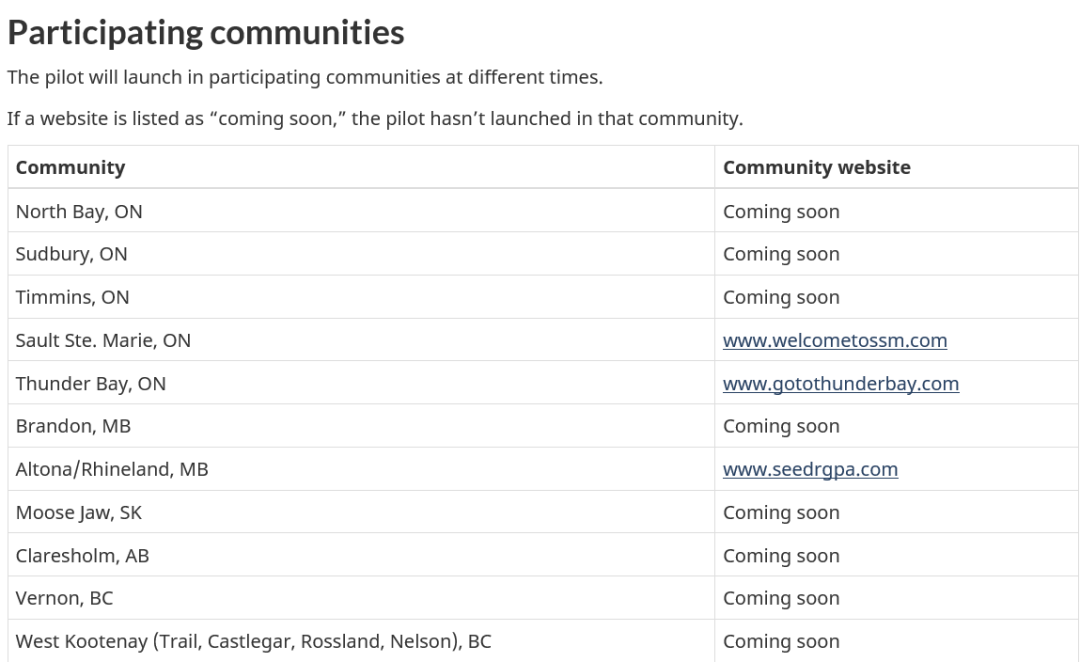 (RNIP参加的城市,来源于加拿大移民局官网)