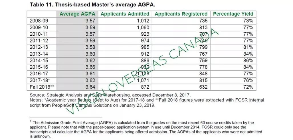 也就是说虽然阿尔伯塔官网上写的申请他们研究生的最低GPA要3.0,但是被录取的平均GPA达到了3.6。授课型硕士的情况更不乐观,从3.49一路涨到了3.58.