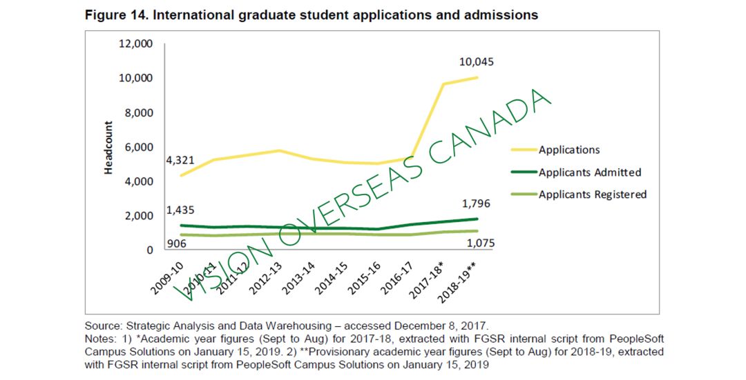 最后还是聚焦于我们的国际留学生录取:阿尔伯塔的国际生申请从2017年到2019年两年间,由5300多人增长到了10000人,但是录取的人显然没有增加太多:从1448到1798个。