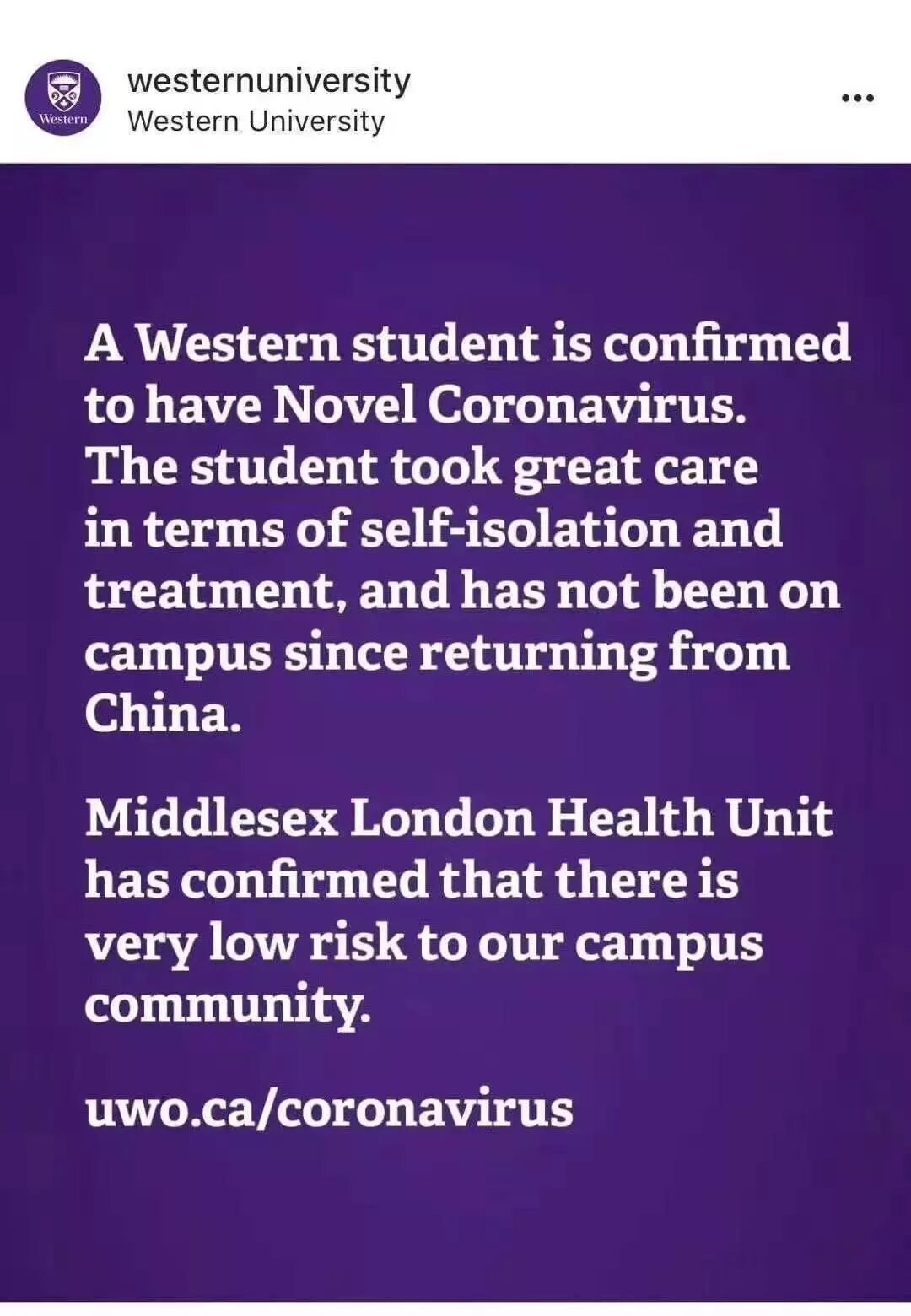 加拿大卫生部在发布加拿大第4例新冠肺炎病例的同时即表示该病患已经康复,现已回家隔离接受定期检查。据了解,第4例确诊新冠病毒患者是20多岁的中国女生,在安省伦敦Western University (西安大略大学)就读,并不是住校生。