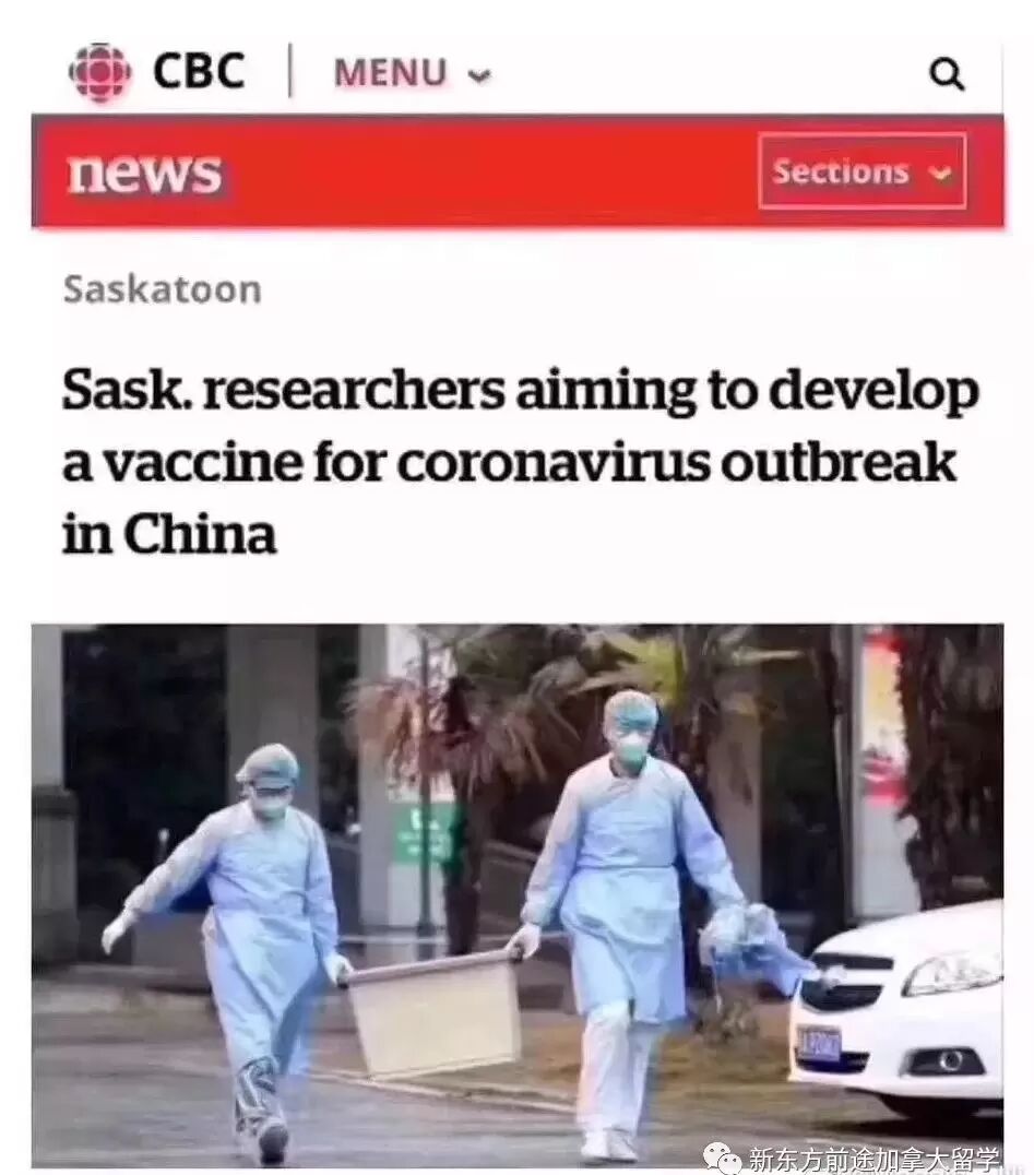 加拿大卫生部批准,萨省大学国际疫苗与传染病研究中心VIDO-InterVac开始研制“武汉肺炎”新型冠状病毒疫苗,目标六到八周后进入动物实验环节。该中心建立于2003年非典爆发时,冠状病毒是其主要研究领域之一。