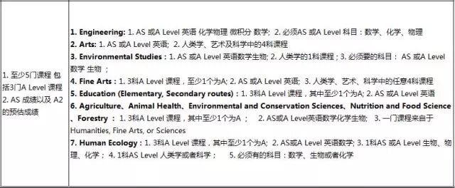 说了这么多,你对A-Level有个大概的了解了吗?小编给你们找来了这份入学条件给大家做参考,准备要留学的同学可要仔细看好喽。(以下表格中为一般要求+具体要求)