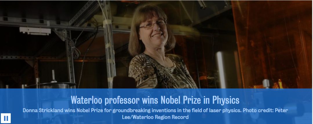 2018年获得诺贝尔物理学奖的三位科学家中,就有一位来自滑铁卢大学——Donna Stickland,也是历史上第三位获得物理学诺奖的女性科学家。