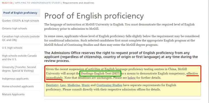 以上是加拿大部分院校的官方说明,小编不再一一截图啦,快来看看加拿大认可DET的院校名单吧(包括部分研究生院,大多数本科,以及众多优质中学):