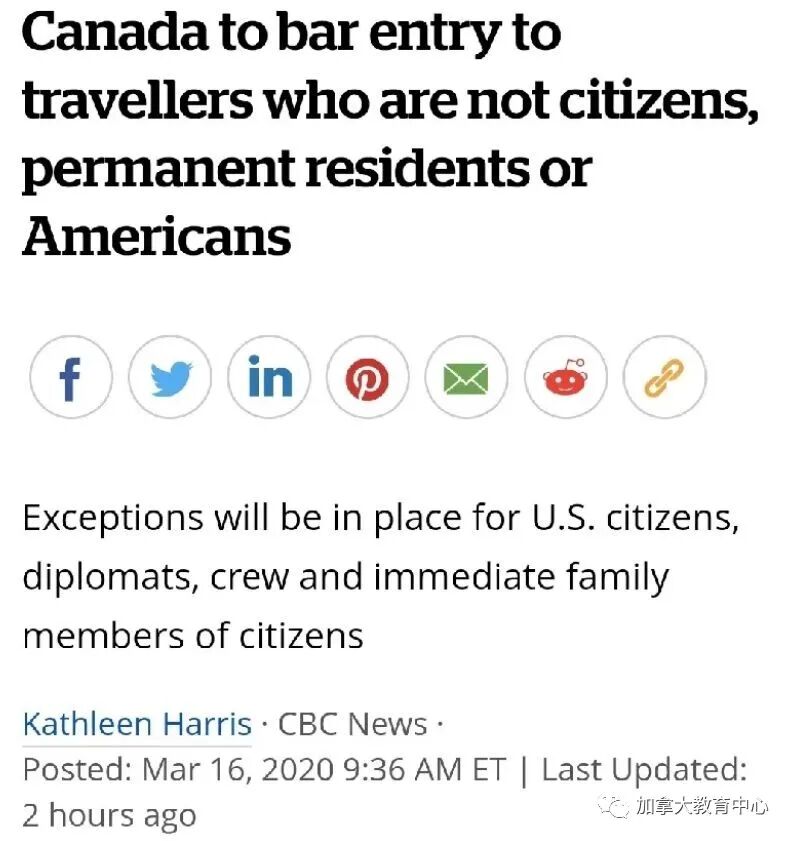 1.加拿大禁止所有非加拿大公民或永久居民的旅客入境