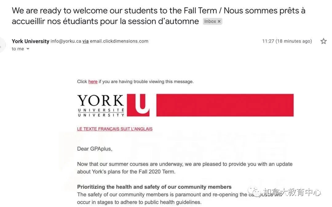 约克大学电子邮件,针对秋季课程如何安排做出回应!