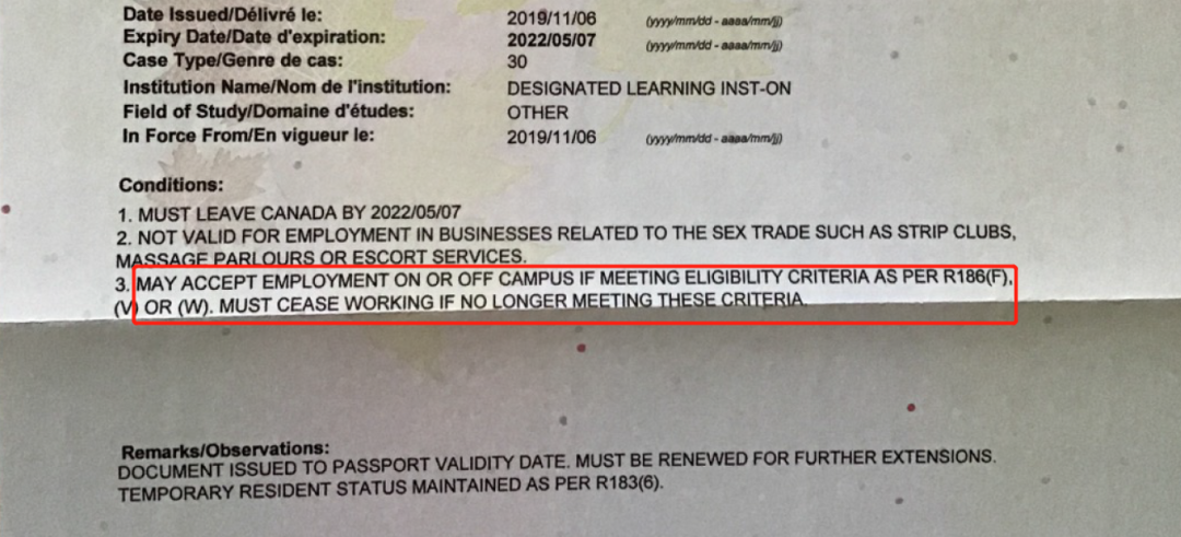 这个时候有留学生肯定会说,我的大签的condition写的是:This permit does not authorize the holder to engage in off campus employment in Canada,这个情况一般都是留学生拿到的是双录取,需要读语言。针对这一类留学生,如果是在语言学校读语言的,之后顺利转到大学了,那就只需要在IRCC官网更新学签信息。如果是在大学读语言班的,只需要等进入正课后,续大签,拿到新的大签后,就可以正常申请SIN Number了。