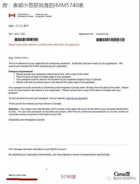 3、获签信MM5740表(网上申请递交护照的确认信 IMM5740)打印出来就好,见下图,记得不要和学签下签信混淆,那个是IMM5754)