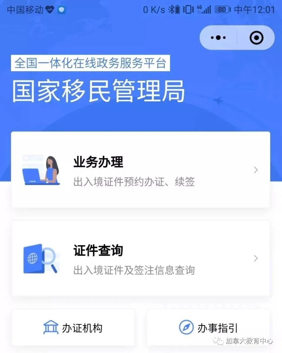4、文件清单中第三项的“入境中国的记录”(就是学生回国入境日期,证明你是小签批准后才入境中国),虽然目前疫情下入境中国又改为人工入关盖章,但是还是建议需要回国贴小签的同学们,利用以下办法:就是在 上搜索“移民局”小程序: