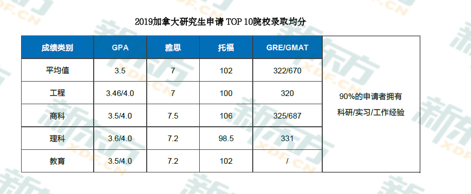 上图是申请到加拿大 名校的本科的学生平均背景: