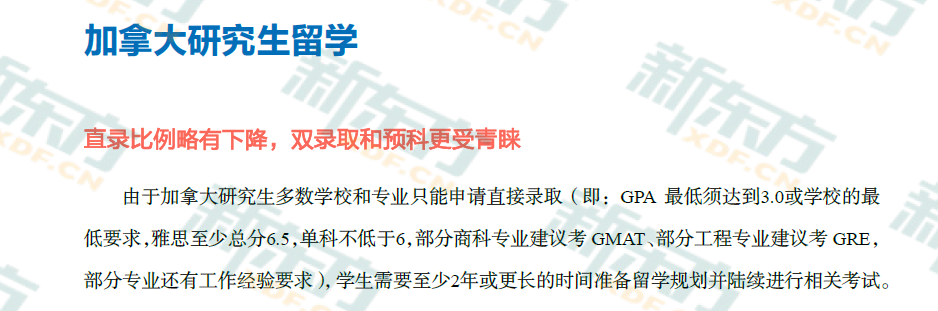 “加拿大研究生多数学校和专业只能在达到语言要求的情况下申请直接录取。”
