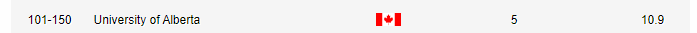 · UBC大学,第37名; · 麦吉尔大学,第67名; · 麦克马斯特大学,第90名;