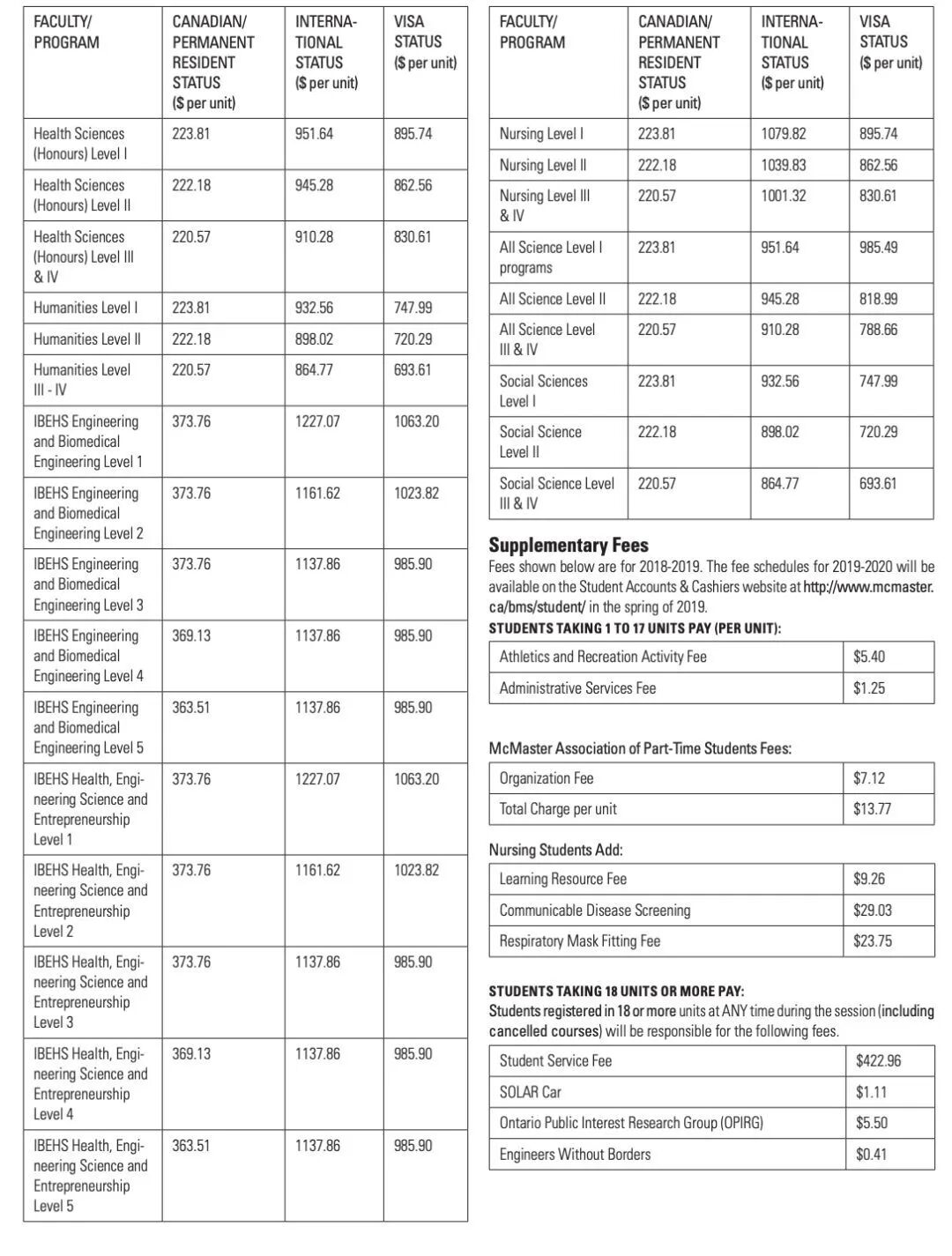 麦克马斯特是我见过的最实在的大学了,官网里直接就能找到每年学费的涨幅,而且整体学费水平保持在较低水准。