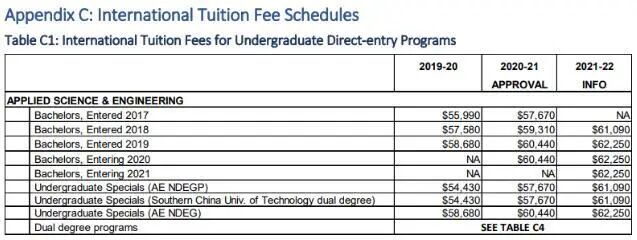 学校网站列出的费用是一个UNIT的费用,总的话比去年上涨4%。
