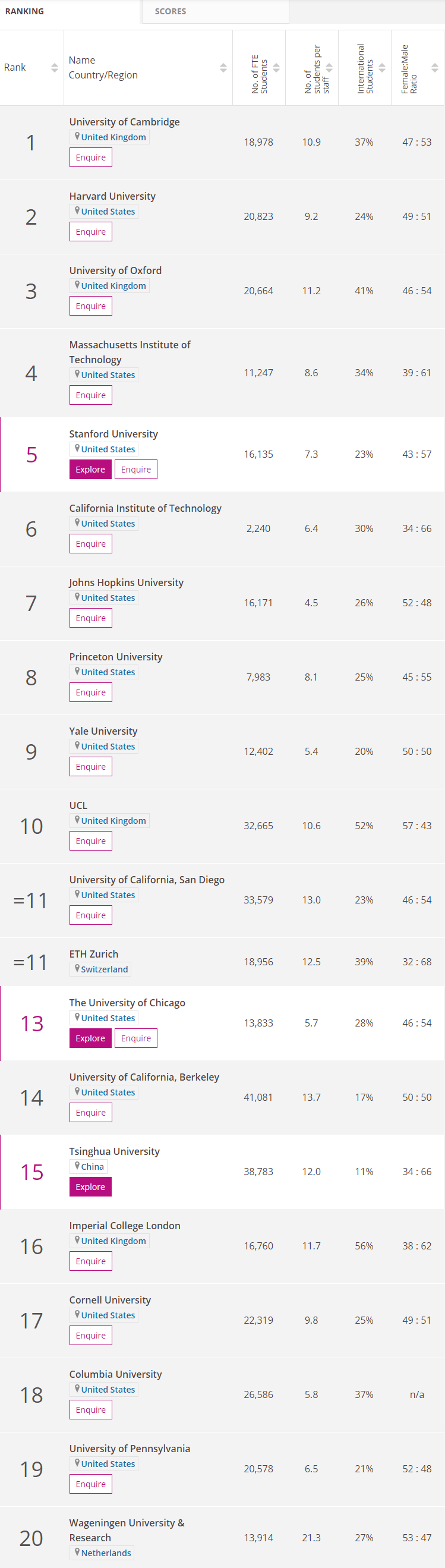 作为排名届的四大扛把子之一,泰晤士高等教育(THE)因为对学术的重视,受到了很多申请者的追捧。