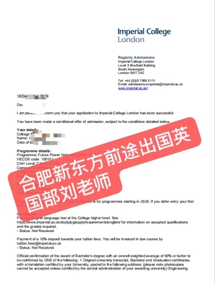 刚接触林同学, 那个时候他是一名新大一的学生,但是对于未来的规划却是一个思路非常清晰的男生,在沟通中,我了解到林同学的目标是冲刺英国G5院校的,世界排名第八的帝国理工院校,申请难度可想而知;这也意味着对于我们双方来说都是一个巨大的挑战,林同学不仅在整个大学期间在校均分需要达到至少90分以外,在整个大学期间我们还要合理规划林同学如何提升自己个人的软性背景, 经过几次细致的沟通,林同学最终确认我们合肥新东方前途出国英国部作为他的留学申请指导老师; 之后我们迅速发送文书三表,已经规划清单,指导林同学如何把握住每一个时间节点,并且合理的挑选出最具有含金量的背景提升活动,在后期申请阶段,文书陈亚云老师,细致入微的帮助林同学撰写文书,经过反复推敲确认,第一时间递交申请,截止目前为止林同学已收获: 帝国理工大学, 爱丁堡大学,曼彻斯特及华威大学的录取通知书;