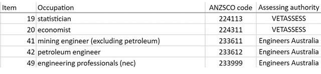 理工专业新增了5个职业:统计师,经济分析师,采矿工程师(233611),石油工程师(233612),和专业工程师,采矿、石油专业重新回到移民清单之中,这也与澳洲目前矿业开始复苏有一定关联。