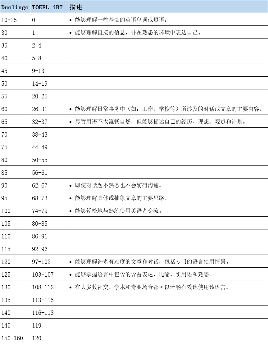 Duolingo English Test 结果与托福对比: