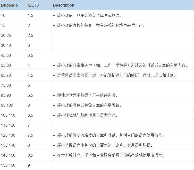 Duolingo English Test 结果与雅思对比: