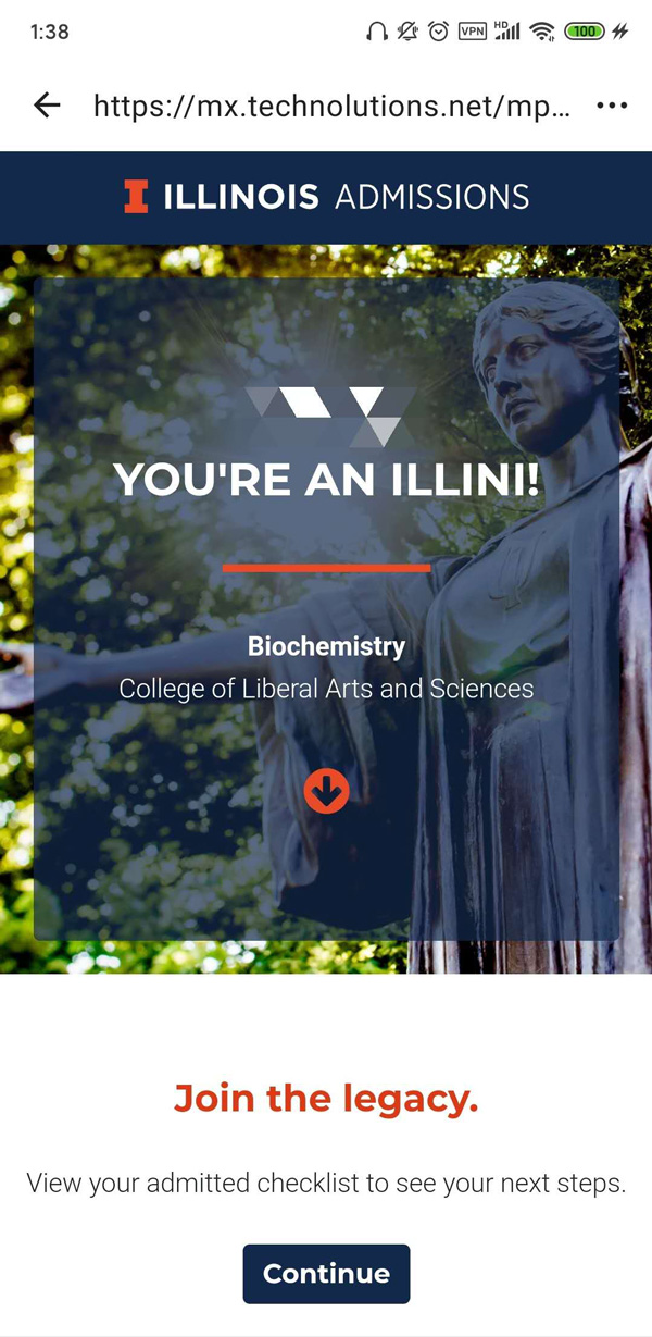 在定校的时候也是十分纠结,学生的爸爸也和我们进行过很多次的沟通。UIUC的专业排名非常靠前,在化学和生化领域非常不错,转学的课程序列要求也十分复杂。申请的过程十分紧张,同时在成绩递交的时候也出了一些小插曲,整个过程是不太顺利的。而且学生在社区已经读了3年,有非常多的学分,UIUC对于带有很多学分的学生还有额外的审核。最后在学生和我们的不懈努力配合下,拿到这枚宝贵的录取。