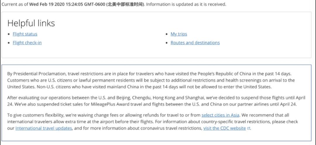 美联航 United Airlines也宣布,将停飞往返中国大陆和香港的航班至4月底。 另外,国内的东方航空,中国国际航空,南方航空、厦门航空都保有少量的前往洛杉矶,纽约等美国一线城市的航班。