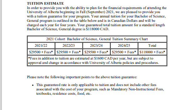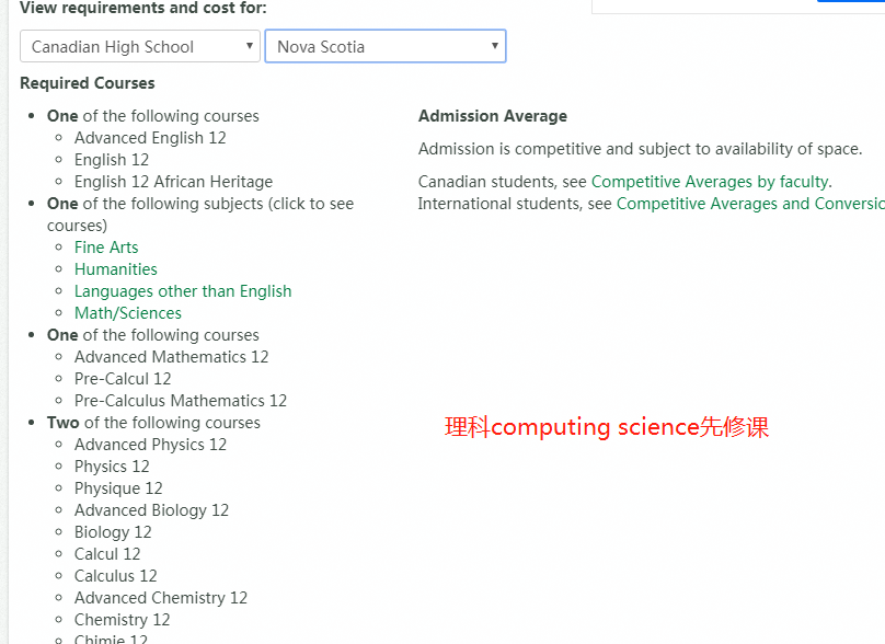 阿尔伯特大学和往年一样发放录取都是根据G11也就是高二的成绩单去发放预录取,因此在申请系统开放的第一时间递交的时候只需要递交高二成绩单以及提供高三正在学习以及下学期会修的课程名称,雅思也可暂不提供,需要注意的是不同专业针对不同体制的高中学生入学要求都均不同,该同学对应的是加拿大新斯科舍省的高中毕业证,申请的是理学院的计算科学专业。录取通知,先修课要求,学费信息如下图:
