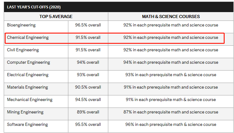 而麦吉尔大学化学工程的专业而言,2020年的入学TOP5均分为91.5,所有数学和理科必修课每一门课程不低于92分,其中数学12要求微积分或则预备微积分,理科先修课要求为G12的生物化学物理三选二。