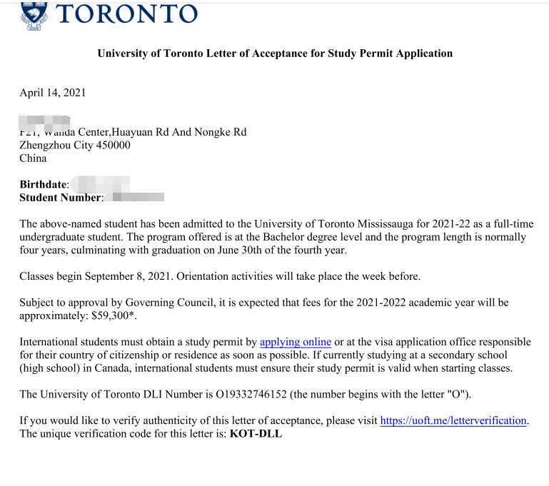 5. 接受offer的截止日期:2021年5月5日前;接受的话还需要缴纳1000加币押金,以确保位置(押金在正常入学后会转作为学费的一部分;如接受offer后放弃入读,已缴纳的押金不再退还)。