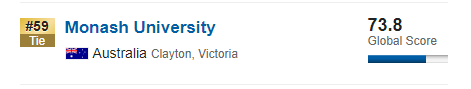 此次Monash大学以世界排名59位列全澳第四,在排名上和北京大学并列。