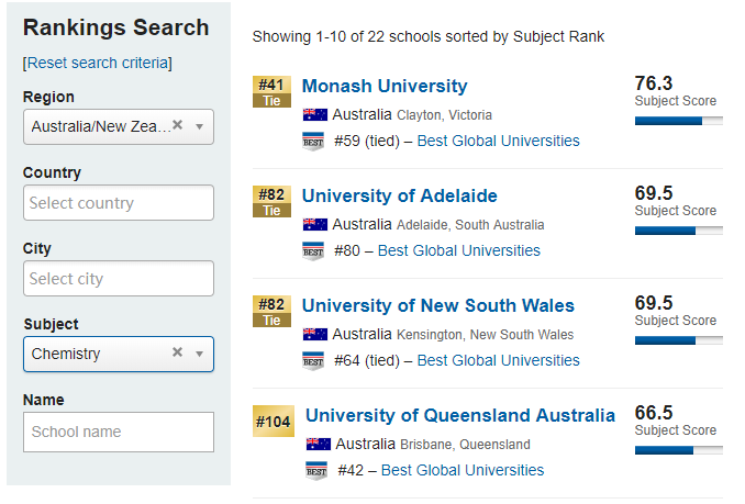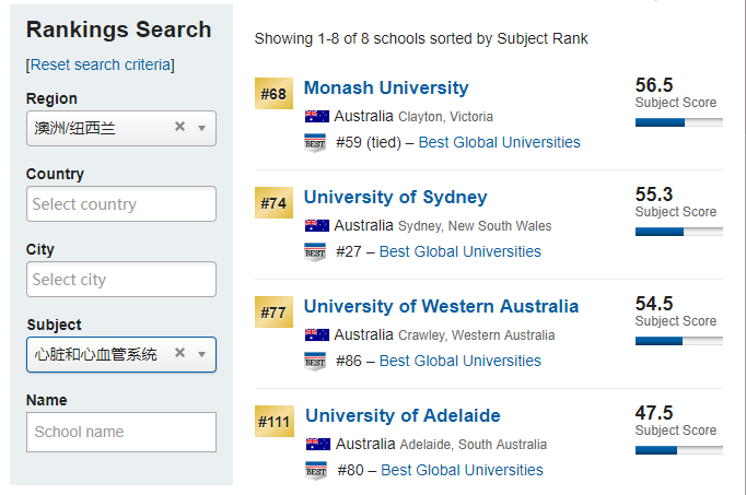 除了综合排名的攀升,Monash的单科排名给了人很大的惊喜。