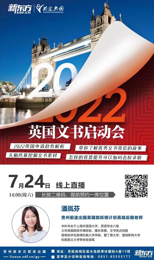 大家都知道,英国留学是提前一年申请,每年9 10月开放 先到先得,除了看重成绩 背景 实践,最重要的审理材料也就是文书(个人陈述、个人简历、推荐信),那么如何准备需要注意什么,上周六贵州前途的潘岚芬老师在线上为大家一一解答。