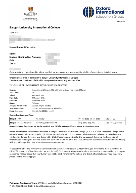 张同学其实是比较优秀的,雅思初考就考到了6,但是没有证书这件事是硬伤,学校专业的选择是非常的有限的,所以自我们接触开始,我们就仔细的挖掘的孩子的背景、抓住亮点、扬长避短,尽最大可能展现张同学的优秀之处;另一方面,我们不停的帮助孩子在英国所有有可能的学校中进行询问、尝试,最终我们还是成功拿到了包括班戈大学在内的多所世界知名大学的offer。
