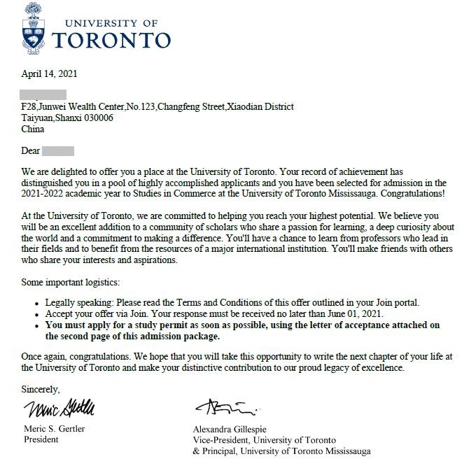 接下来就是漫长的录取等待,最终在今年的3月份,女王大学的首先抛来了橄榄枝,紧接着是西安大略大学,麦克马斯特大学,滑铁卢大学和多伦多大学陆续发来了录取。
