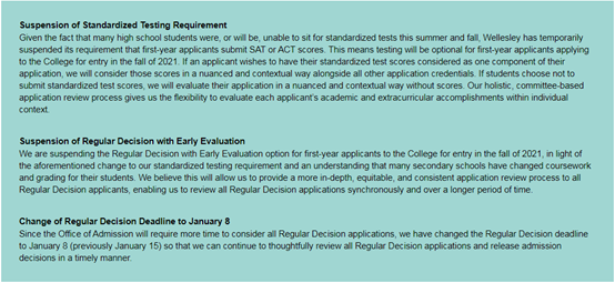 Wellesley提出了几个重要的改变,针对于2021秋季入学的学生: