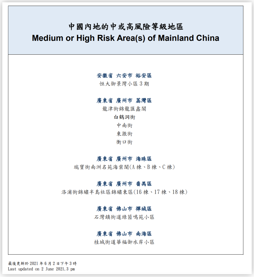 在抵港当天或之前14天曾逗留风险地区名单上所列地区的香港居民,将不可按回港易计划获豁免接受强制检疫入境香港,而须接受14天家居检疫。