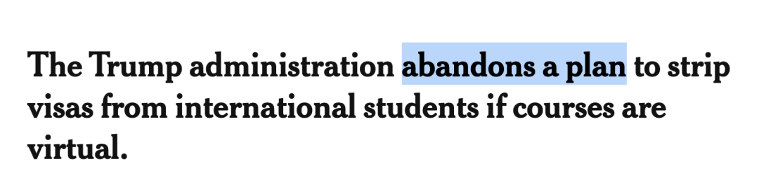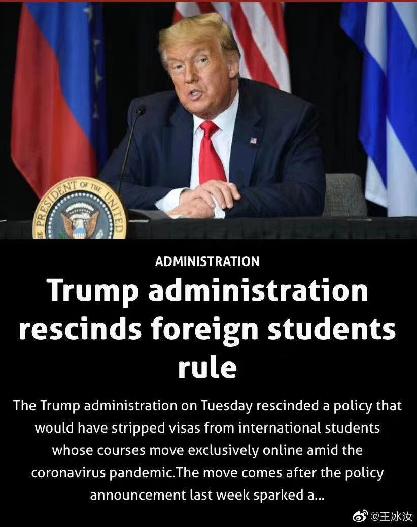 就在今天,迫于各方压力,美国政府已经放弃推行ICE新规!撤销了“美国境内不准全上网课”的禁令!