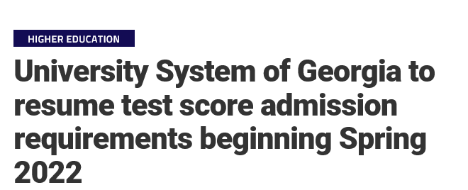 根据佐治亚州大学系统更新的声明,佐治亚州大学系统下的学校将恢复2022年春季及之后入学学生的标化成绩要求。