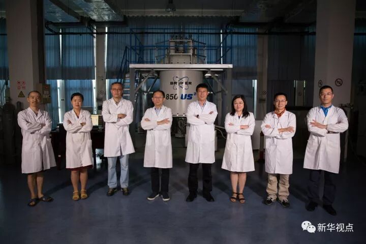 哈佛“八博士”王文超、张欣、张钠、王俊峰、刘青松、刘静、林文楚、任涛(从左至右)在中科院合肥物质科学研究院强磁场科学中心(8月17日摄)。新华社记者 郭晨 摄