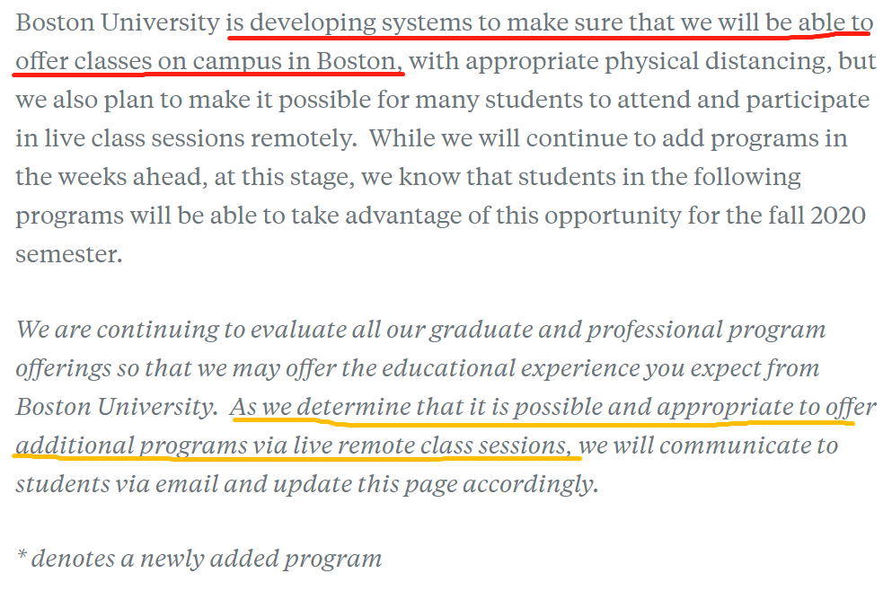 此时,对疫情检测、接触追踪和治疗能力的预测尚未确定,我们无法完全清楚地说出秋季学期的情况。