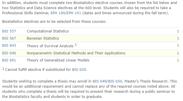 MS in Biostatistics项目的课程设置及学位要求: