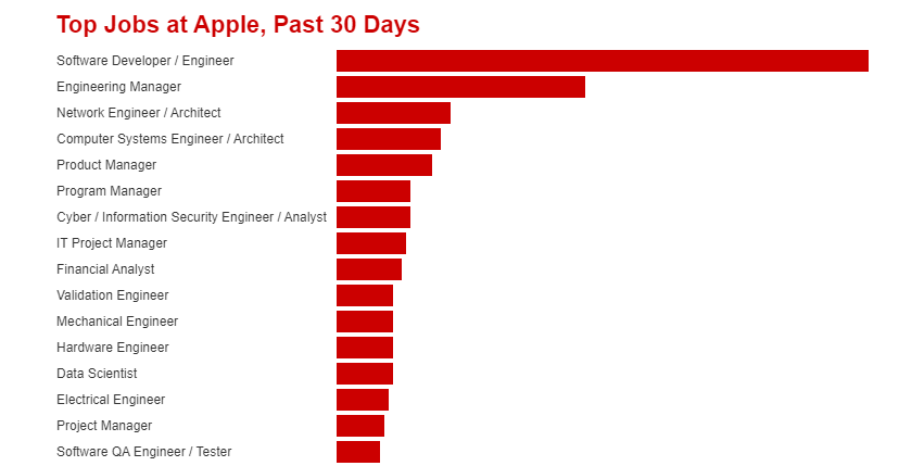 苹果公司一直热衷于聘请软件开发工作人员,在过去三十天内,也陆续招募了许多人才。